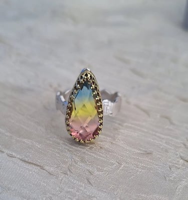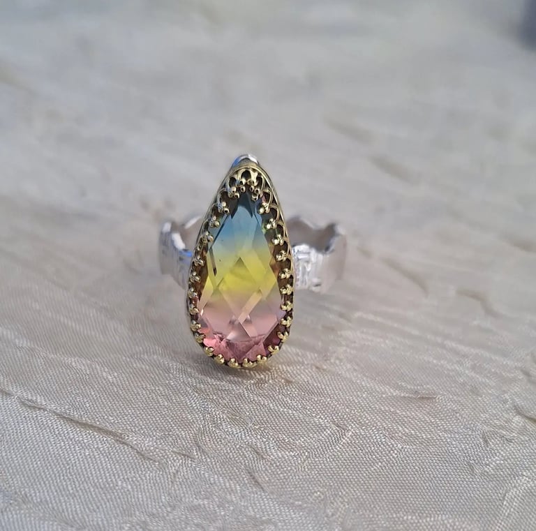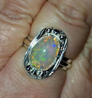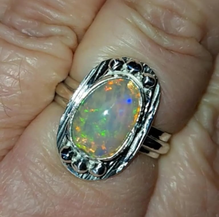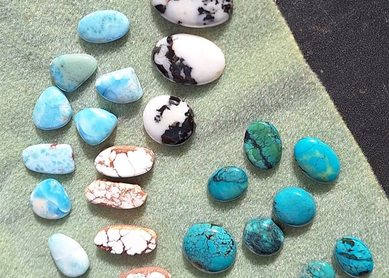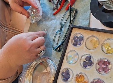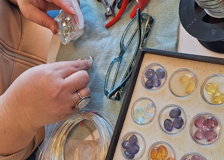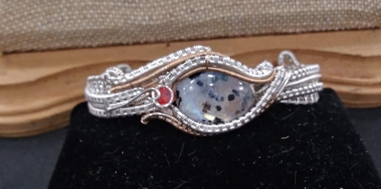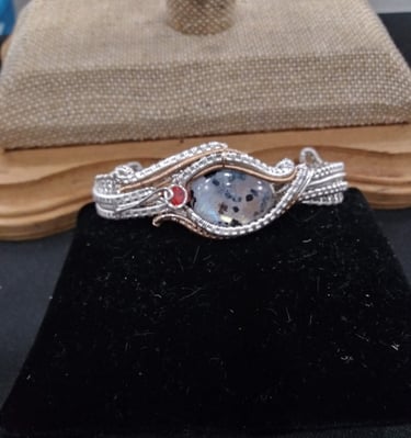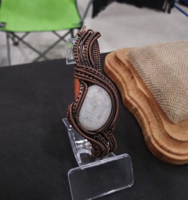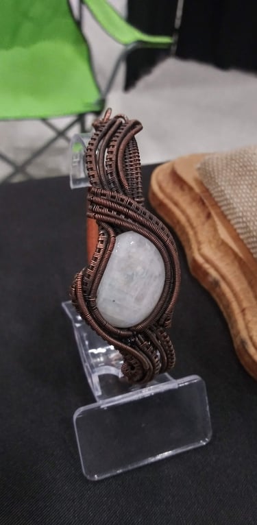 Intricate wire designs embrace natural stones.